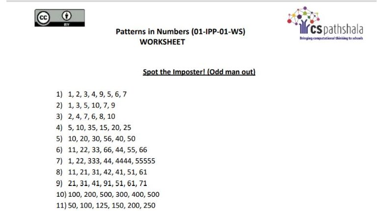 2 min(s) Computational Thinking Patterns in numbers: Worksheet