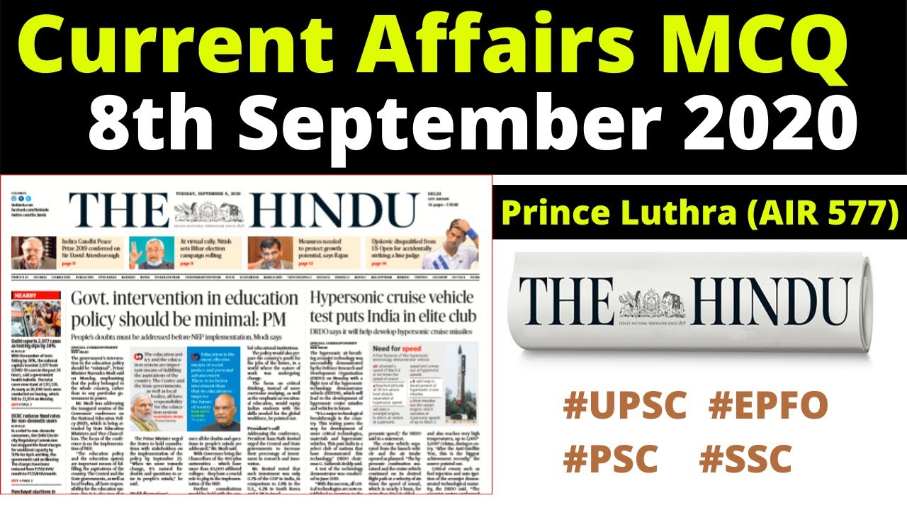 25 min(s) Aptitude & LR Daily current affairs MCQ: 1-2 Sep2020