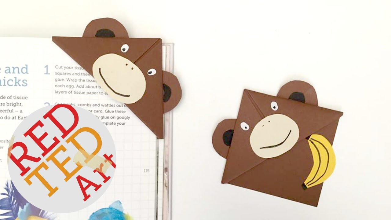 6 min(s) Art and Craft Easy monkey bookmark corner
