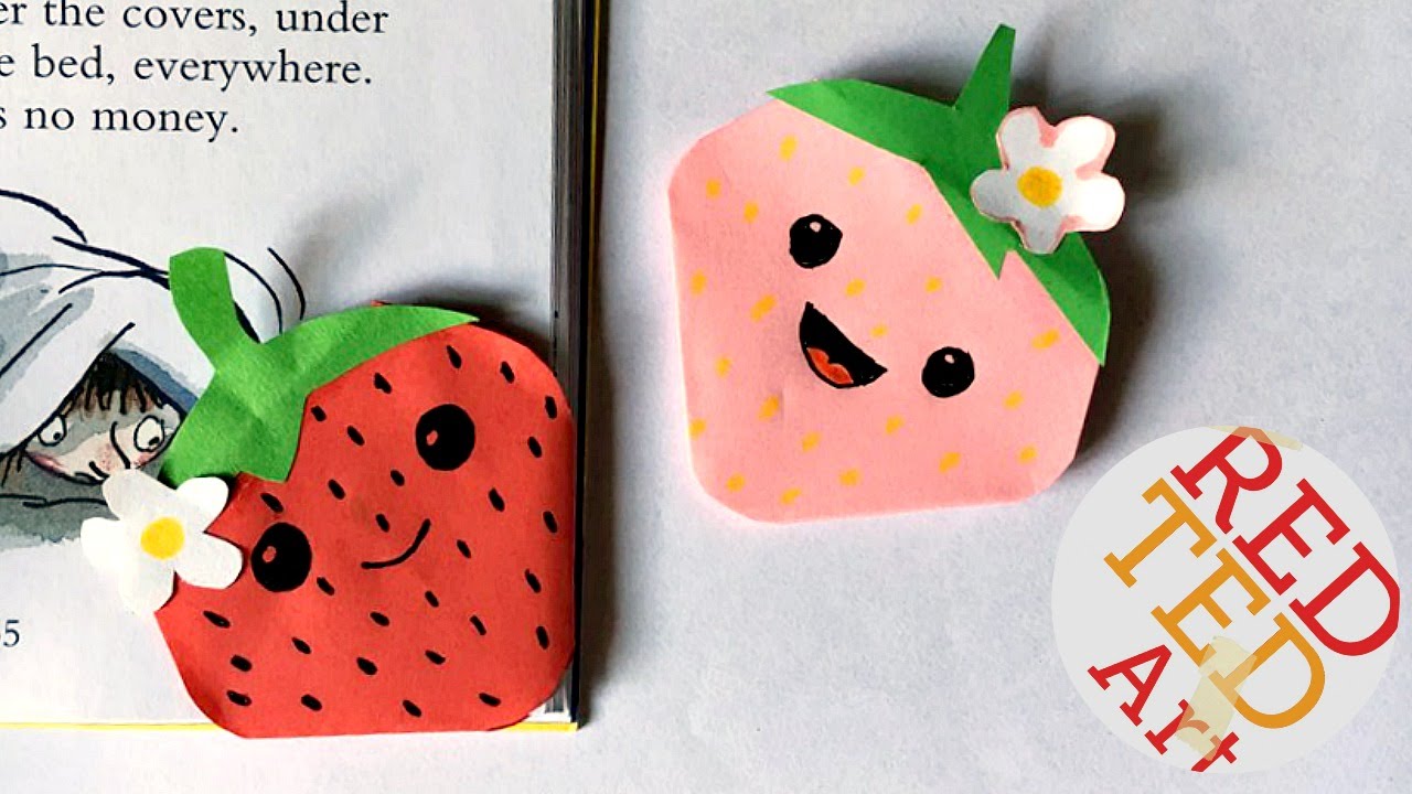 5 min(s) Art and Craft DIY strawberry bookmark corner