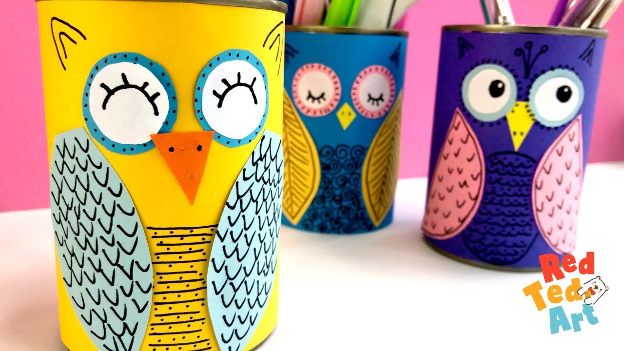 1 min(s) Art and Craft Tin can owls craft