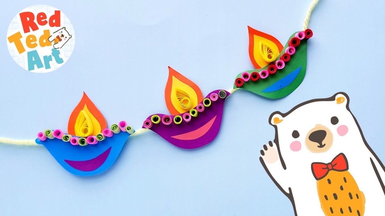 1 min(s) Art and Craft Paper diya garland for diwali