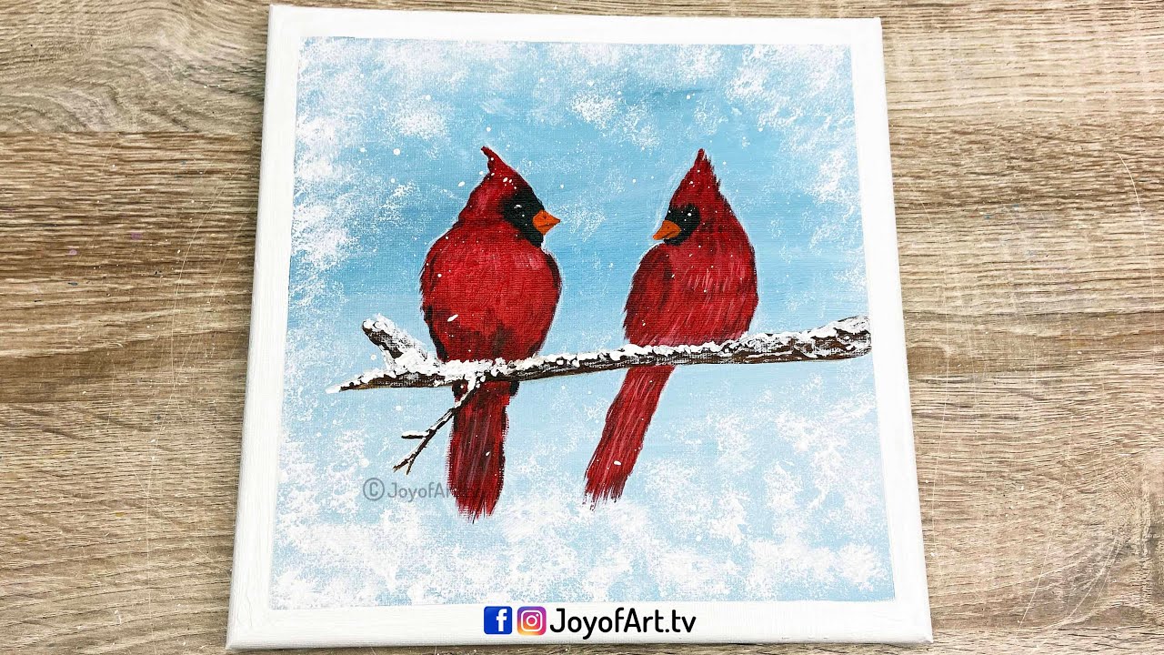 8 min(s) Art and Craft Cardinal bird winter scenery