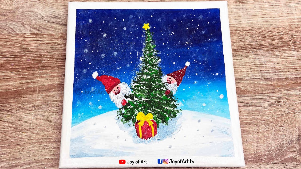 11 min(s) Art and Craft Christmas tree and gnomes painting