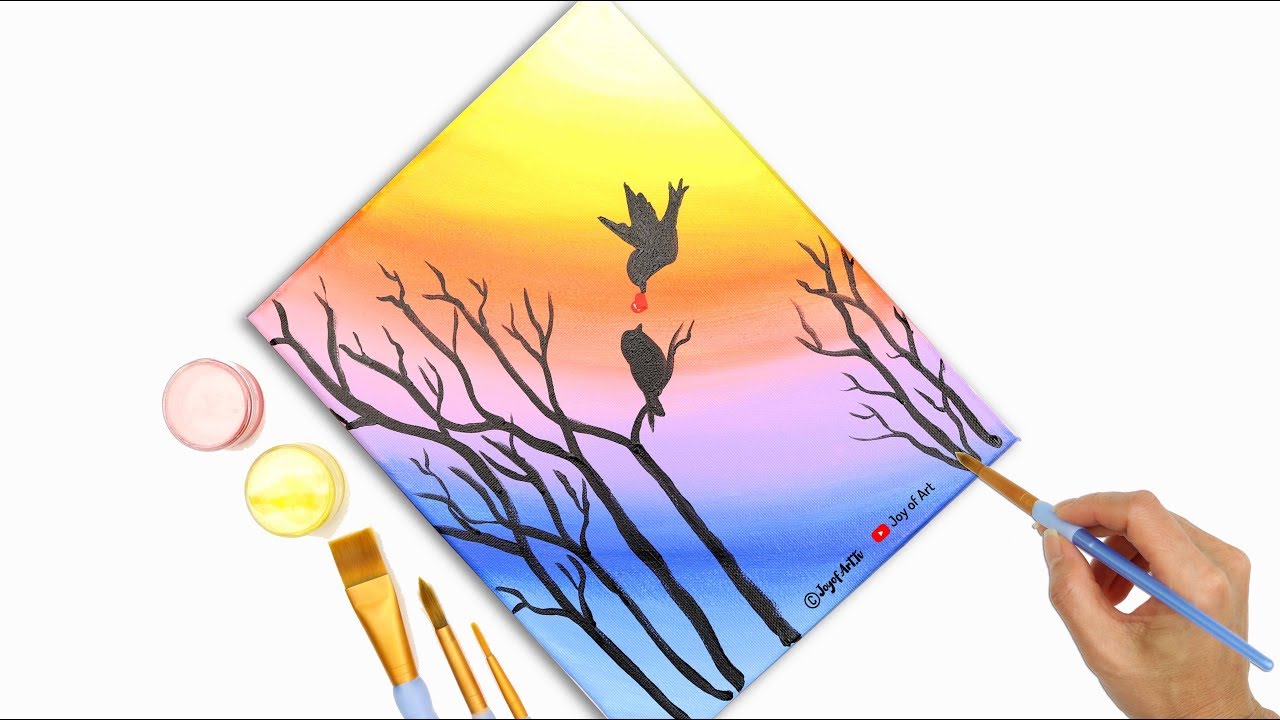 6 min(s) Art and Craft Sunset with Love Birds Easy Acrylic painting