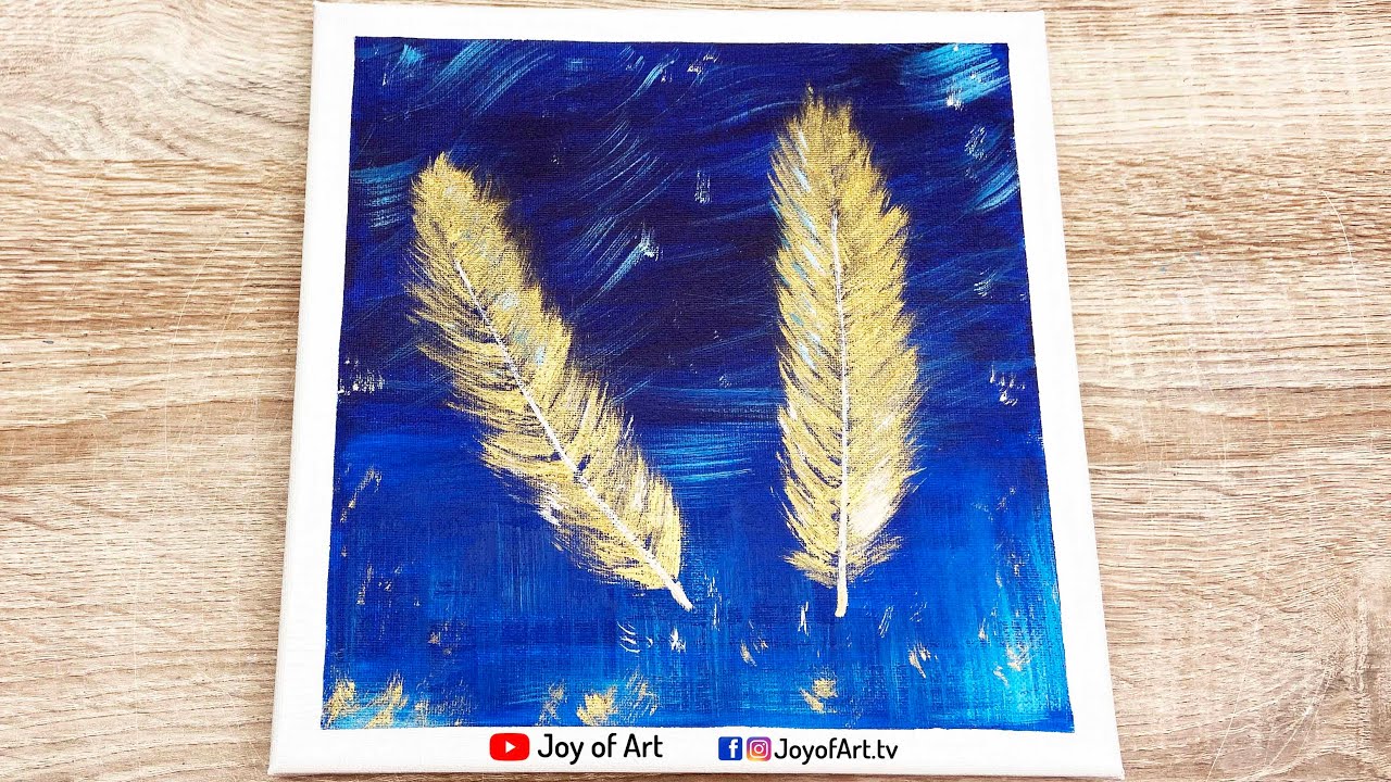 6 min(s) Art and Craft Gold feathers acrylic painting
