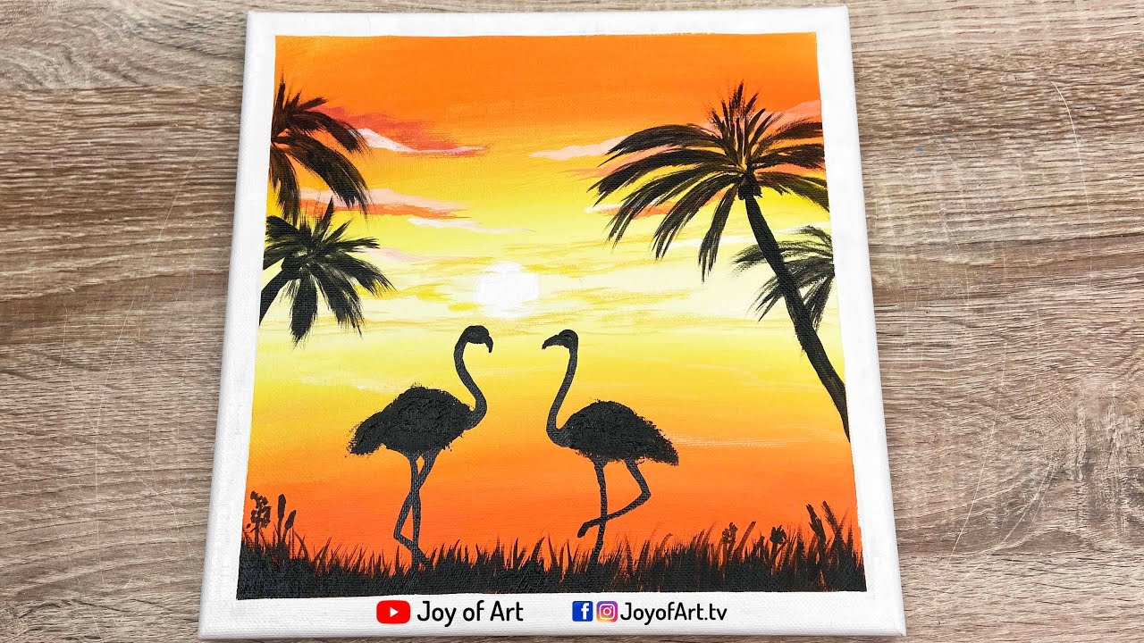 6 min(s) Art and Craft Flamingo love under sunset