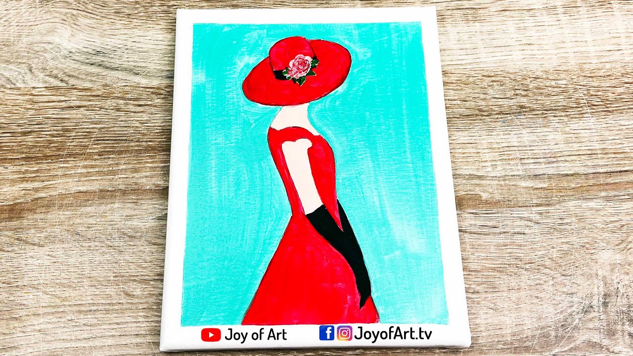 5 min(s) Art and Craft Women in red dress acrylic painting