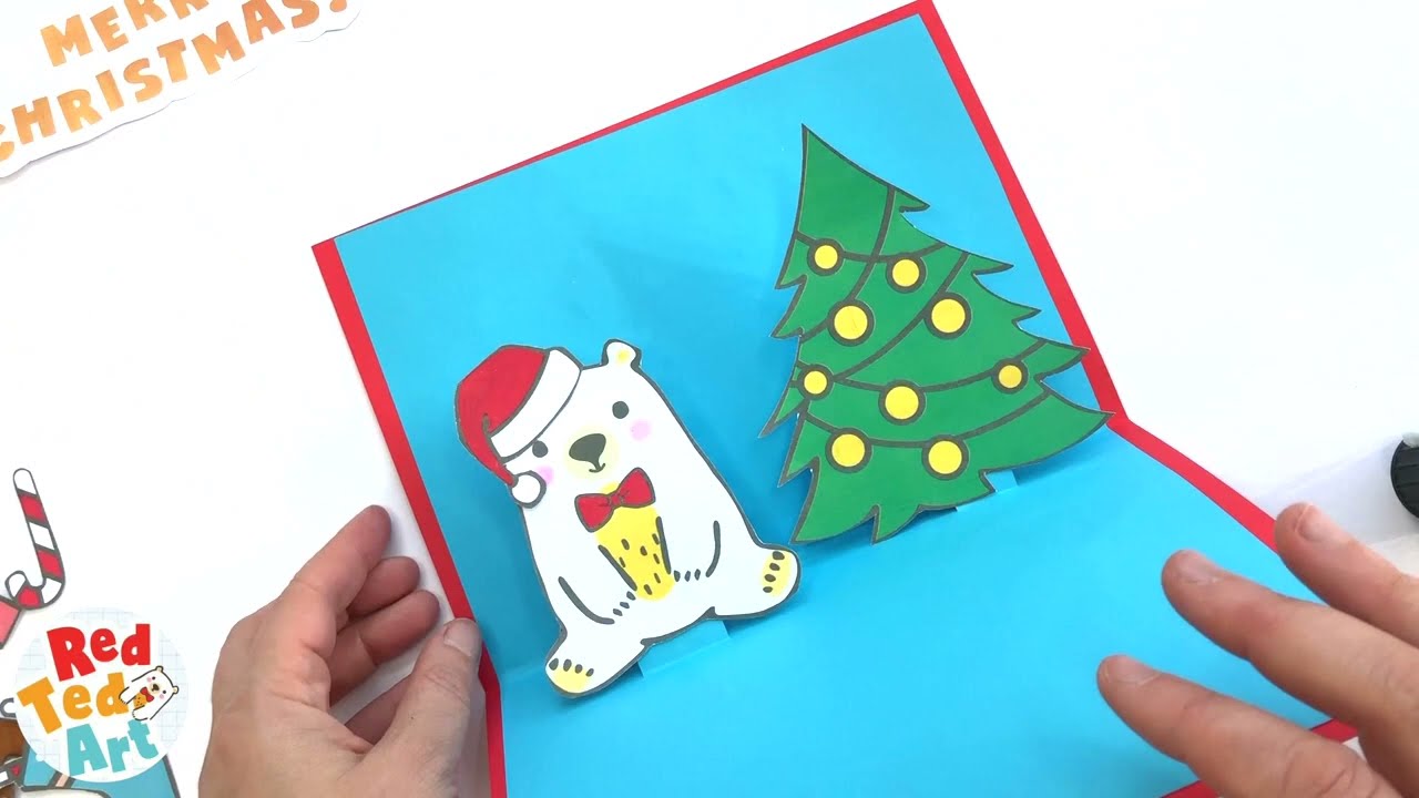 7 min(s) Art and Craft Printable ted pop up christmas card
