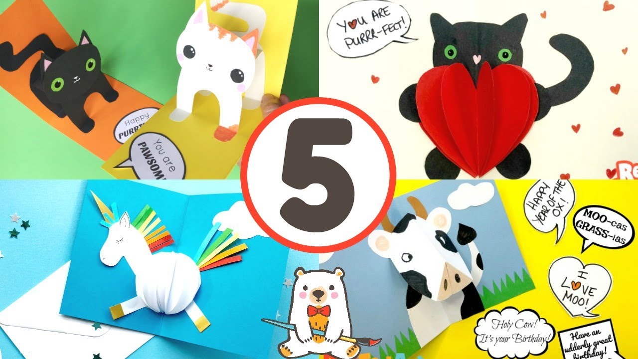 10 min(s) Art and Craft 5 pop up animal card designs