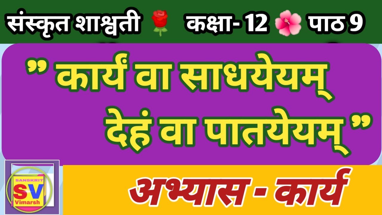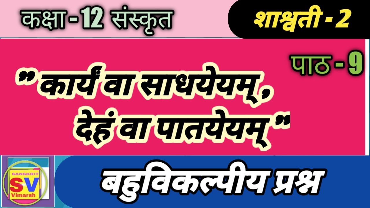 9 min(s) Sanskrit Karyaam va sadhayeyam deh va patayeyam: Mcq