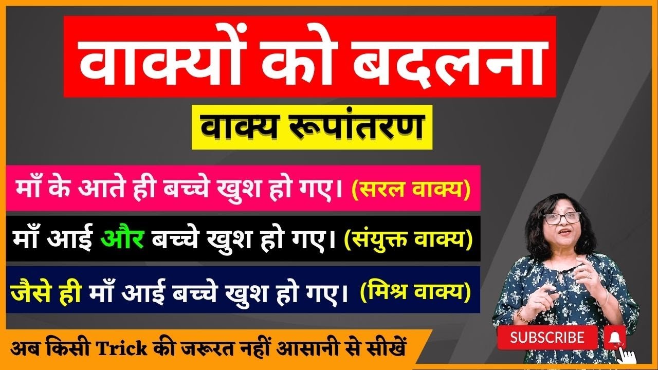 5 min(s) Hindi Vakya ko dusre prakaar k vakyo m badlna
