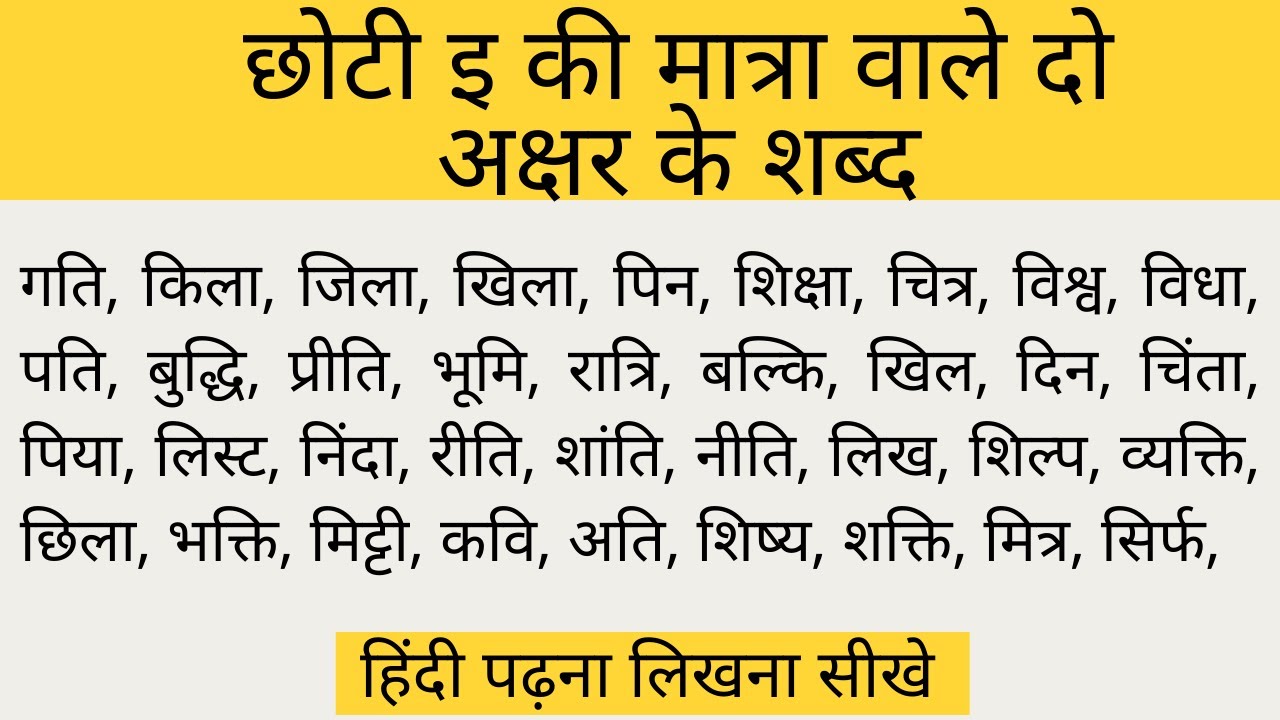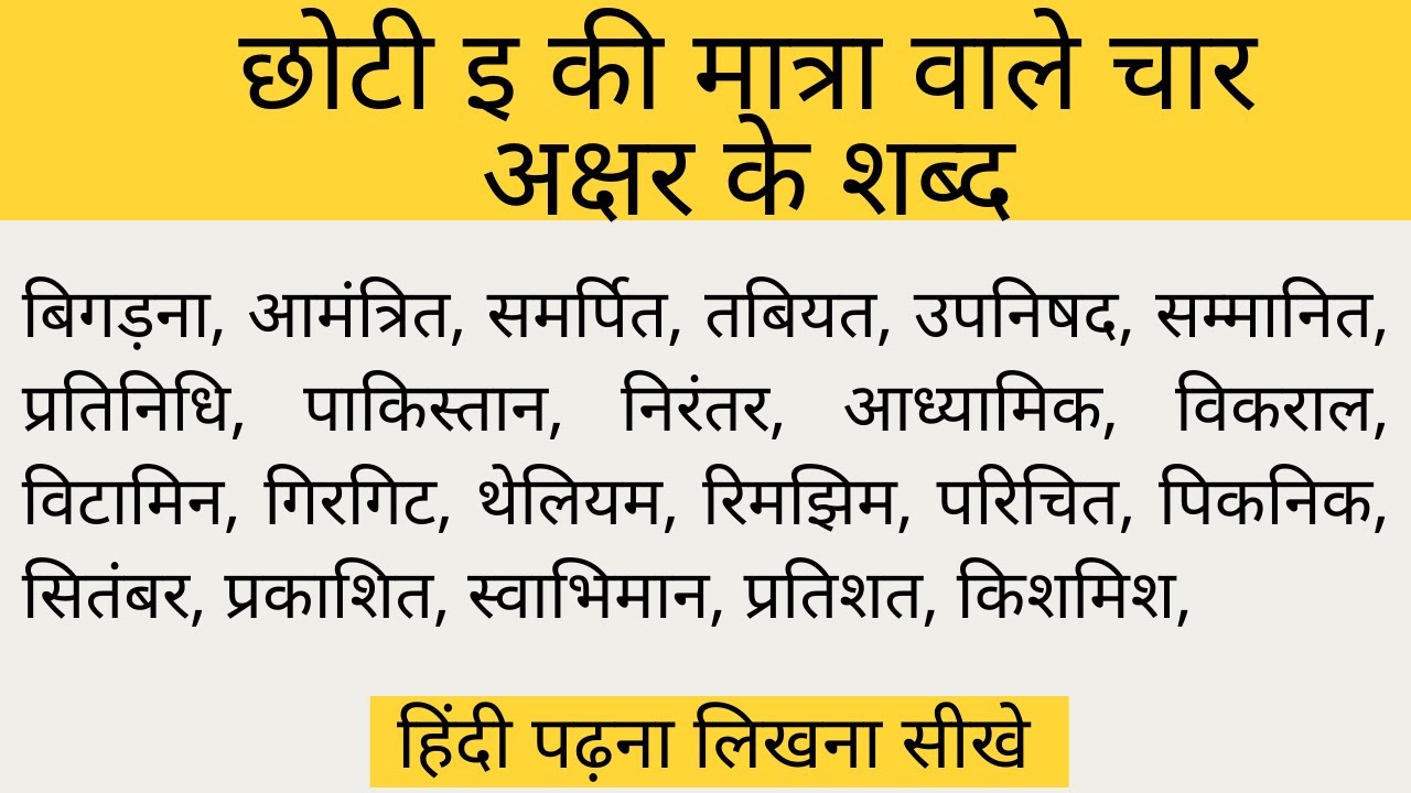 4 min(s) Hindi Chhoti ee ki matra wale shabd char akshar Ke hindi mai