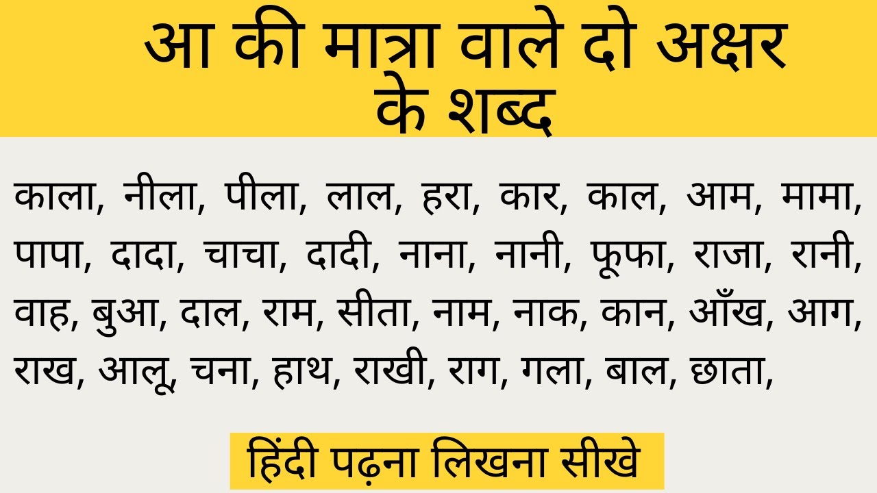 10 min(s) Hindi Aa ki matra wale shabd do akshar ke hindi mai
