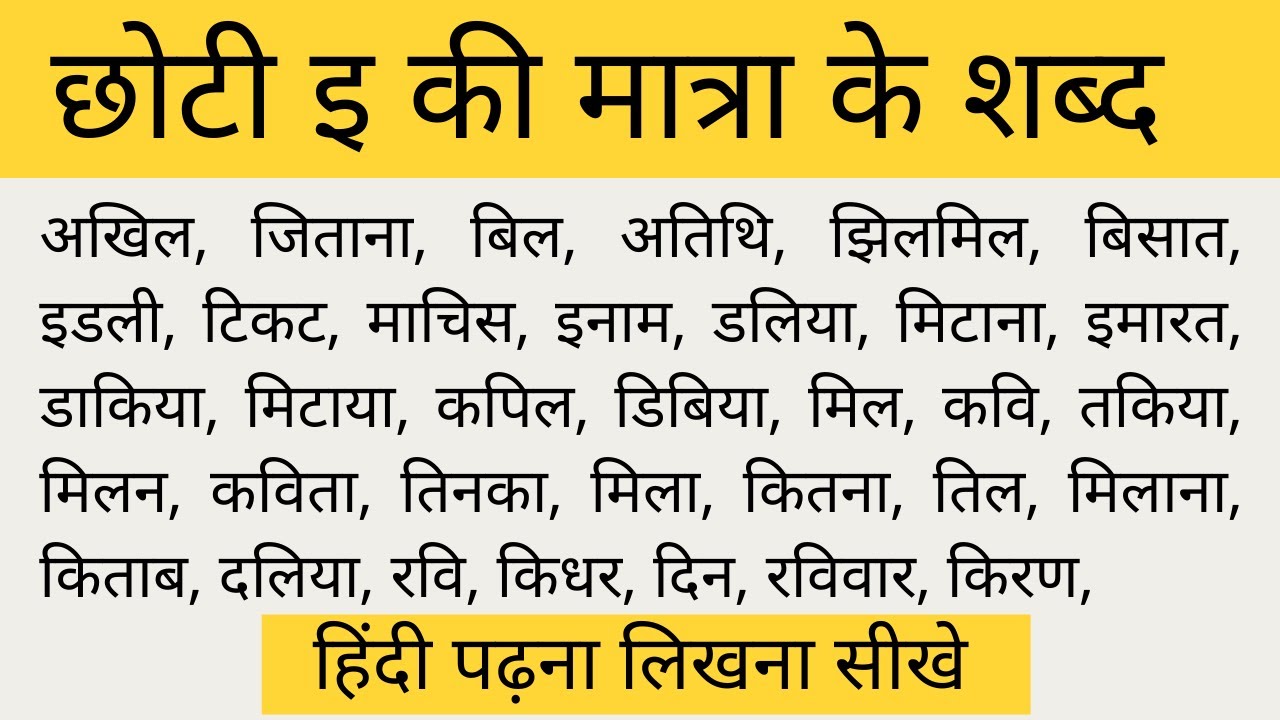 15 min(s) Hindi Chhoti ee ki matra wale shabd
