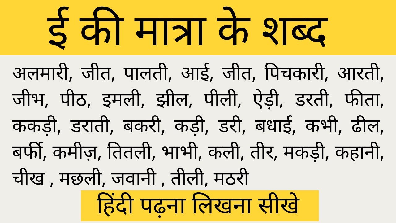 13 min(s) Hindi Badi ee ki matra ke shabd