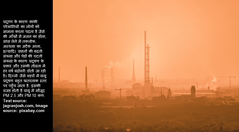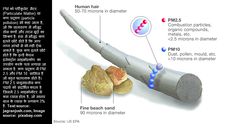 PM 2.5 वायुमंडलीय कण पदार्थ को संदर्भित करता है जिसमें 2.5 माइक्रोमीटर से कम व्यास होता है, जो मानव बाल के व्यास के लगभग 3% है, आम तौर पर PM2.5 के रूप में लिखा जाता है, इस श्रेणी में कण इतने छोटे होते हैं कि उन्हें केवल इलेक्ट्रॉन माइक्रोस्कोप की मदद से ही पता लगाया जा सकता है. ये PM10 के समकक्षों से भी छोटे होते हैं. PM10 वो कण हैं जिनका व्यास 10 माइक्रोमेटर होता है और इन्हें fine particles भी कहा जाता है. अधिक जनकारी के लिए यूआरएल पर जाएँ jagranjosh.com