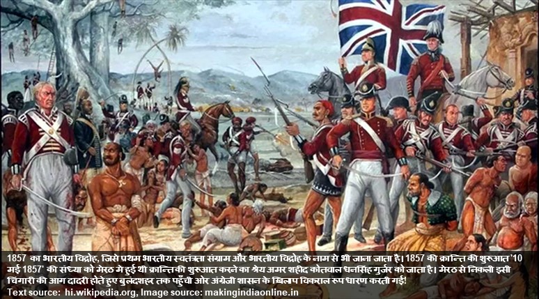 1857 का संग्राम ब्रिटिश शासन के खिलाफ एक बड़ी और अहम घटना थी। इस क्रांति की शुरुआत 10 मई, 1857 ई. को मेरठ से हुई, जो धीरे-धीरे कानपुर, बरेली, झांसी, दिल्ली, अवध आदि स्थानों पर फैल गई। क्रांति की शुरुआत तो एक सैन्य विद्रोह के रूप में हुई, लेकिन समय के साथ उसका स्वरूप बदल कर ब्रिटिश सत्ता के विरुद्ध एक जनव्यापी विद्रोह के रूप में हो गया, जिसे भारत का प्रथम स्वतन्त्रता संग्राम कहा गया। आइये