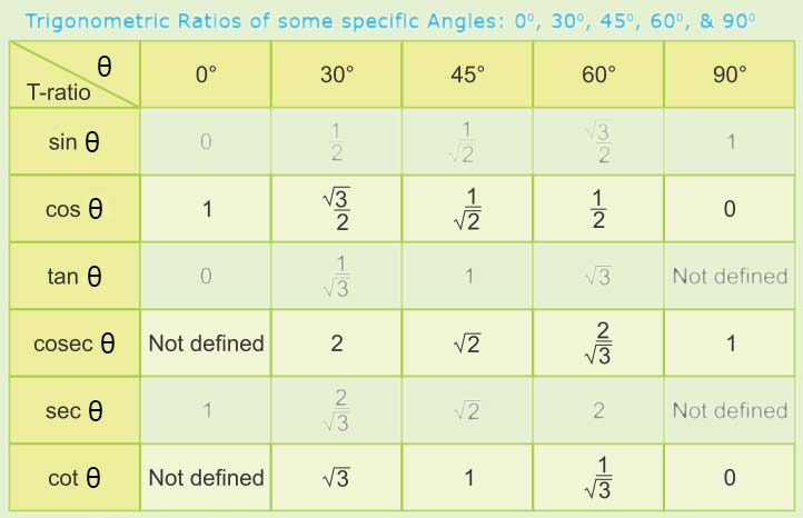 Maths Value of an angle in trigonometric ratios