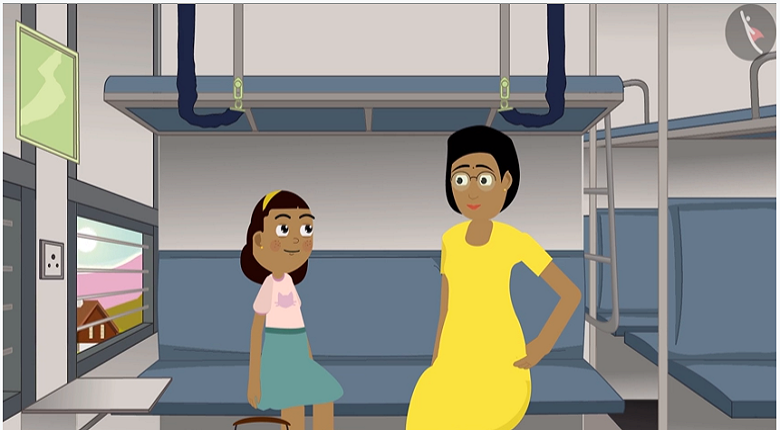 Inside and outside the train.